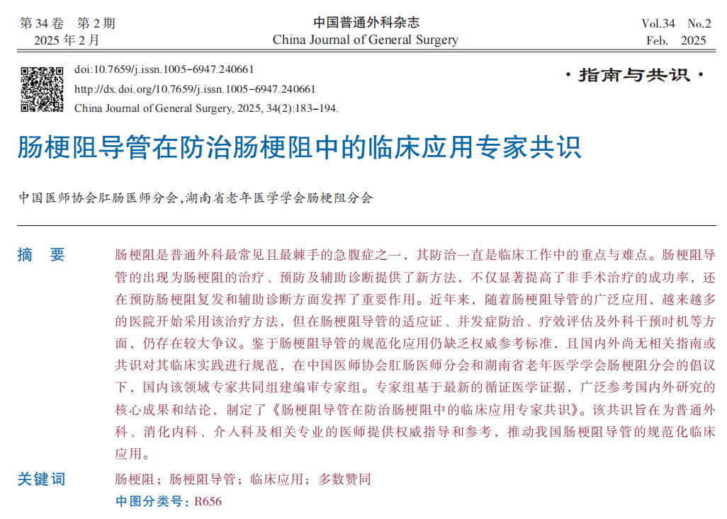 國內(nèi)首個《腸梗阻導管在防治腸梗阻中的臨床應用專家共識》正式發(fā)布