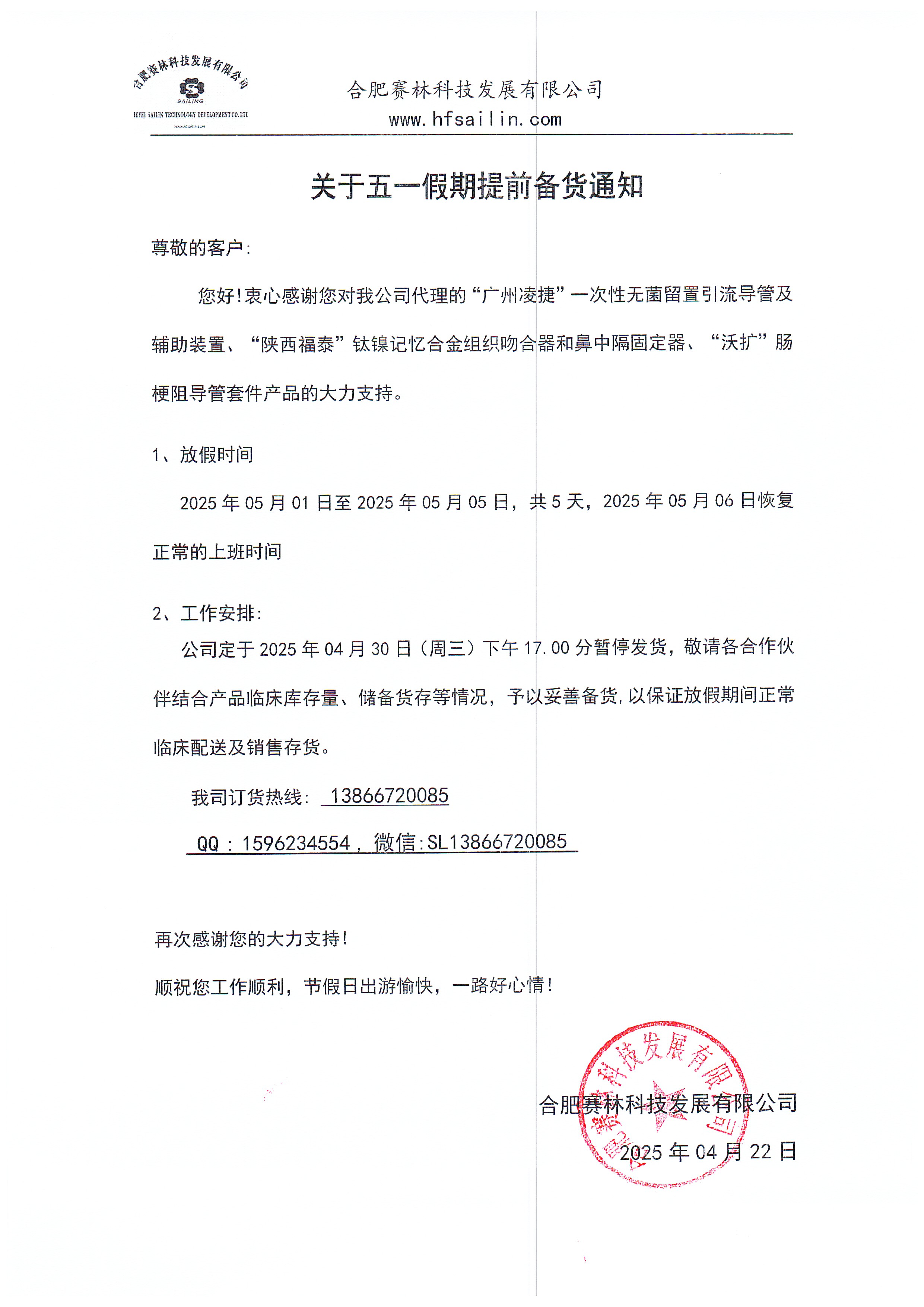 關于五一假期提前備貨通知